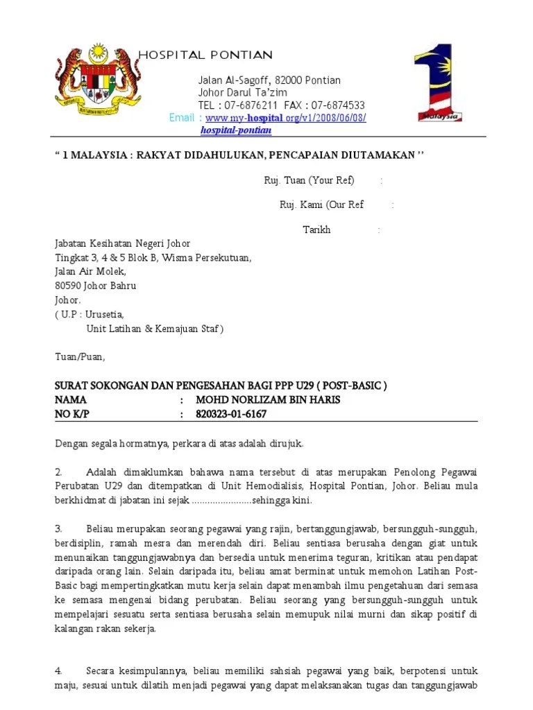 (i) surat pekeliling kementerian kesihatan (bahagian perkhidmatan) contoh surat penangguhan lapor diri. Surat rayuan pertukaran penempatan jururawat modif d.